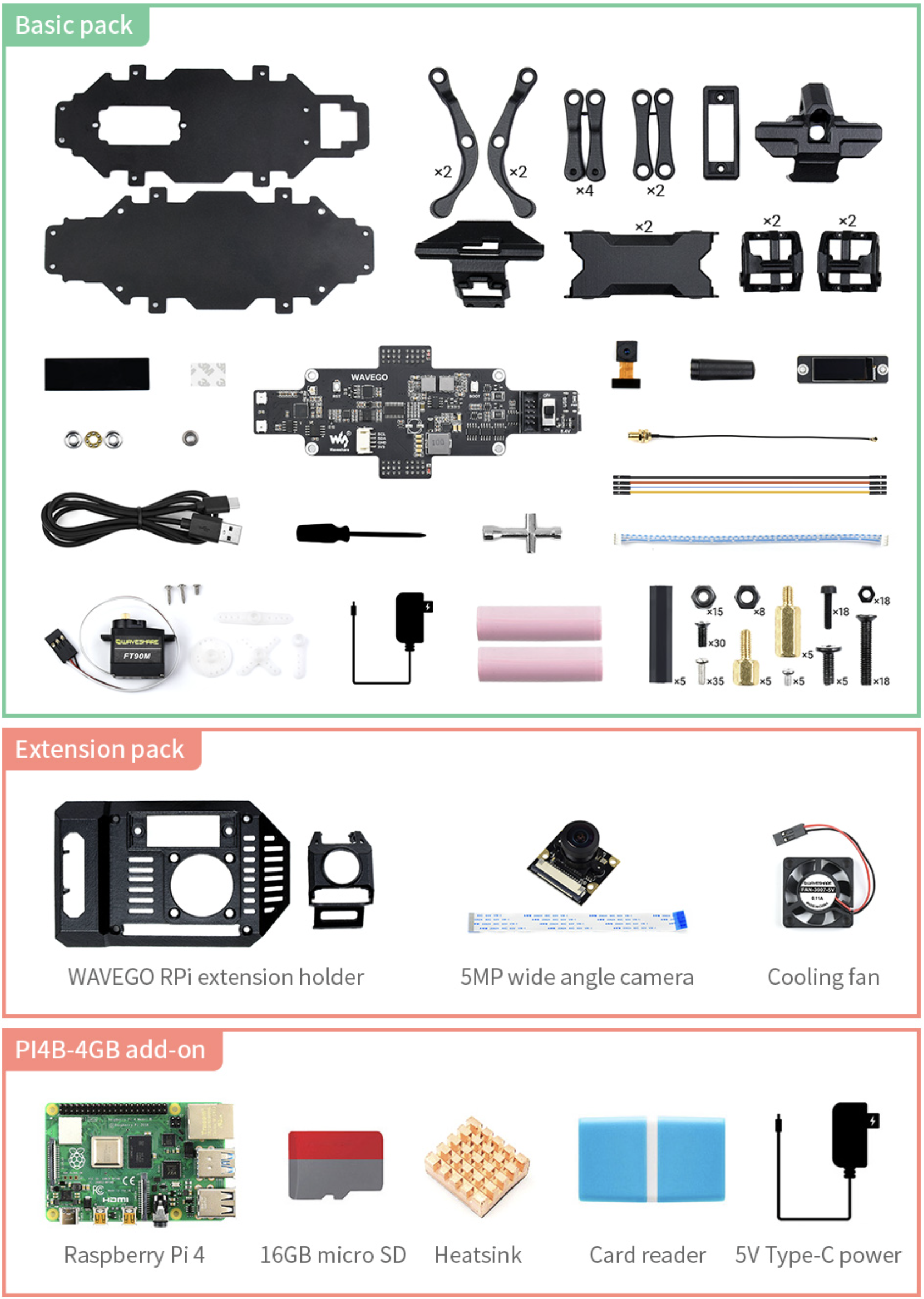 구성품의 실질적인 확인은 WAVESHARE에서 제공하는 아래의 이미지와 주요 구성품을 참조하세요.
